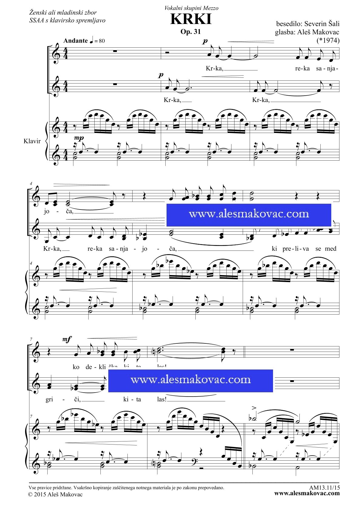 3 strani 15 izvodov Cena vključuje vse stroške, povezane z nakupom in dobavo notnega materiala.