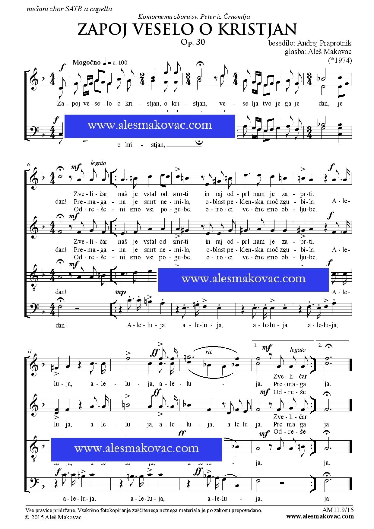 1 stran 15 izvodov Cena vključuje vse stroške, povezane z nakupom in dobavo notnega materiala.